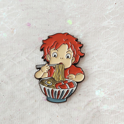 Slurp squad, assemble! This Ponyo Eating Ramen Enamel Pin captures the iconic moment of pure joy from Ponyo, as our favourite fish-girl-turned-human devours a delicious bowl of noodles. With chopsticks in hand, wide eyes, and extra ham slices, this pin is perfect for Studio Ghibli fans and ramen lovers alike.