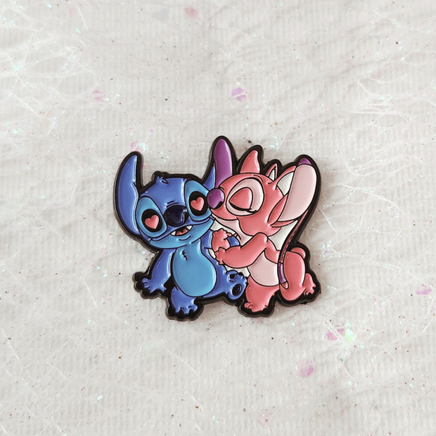 Sweet chaos and intergalactic love! This adorable Stitch & Angel Love Enamel Pin features everyone’s favourite space troublemakers caught in a heart-eyed moment. With Stitch swooning and Angel giving a cheeky kiss, this pin is perfect for Disney fans who love a little romance with their mischief.