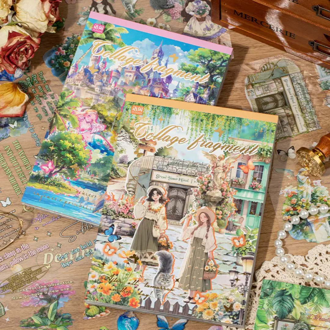 Step into a dreamy world of vintage cottages, enchanted gardens, and scenic landscapes with the Collage Fragment Sticker Book. Each page is filled with delicate floral clusters, whimsical windows, butterflies, handwritten phrases, and fairytale scenery that’s perfect for elevating your journaling, pen pal letters, or scrapbooking. With a variety of designs on translucent sticker sheets, layering and storytelling through stickers has never been easier or more magical.