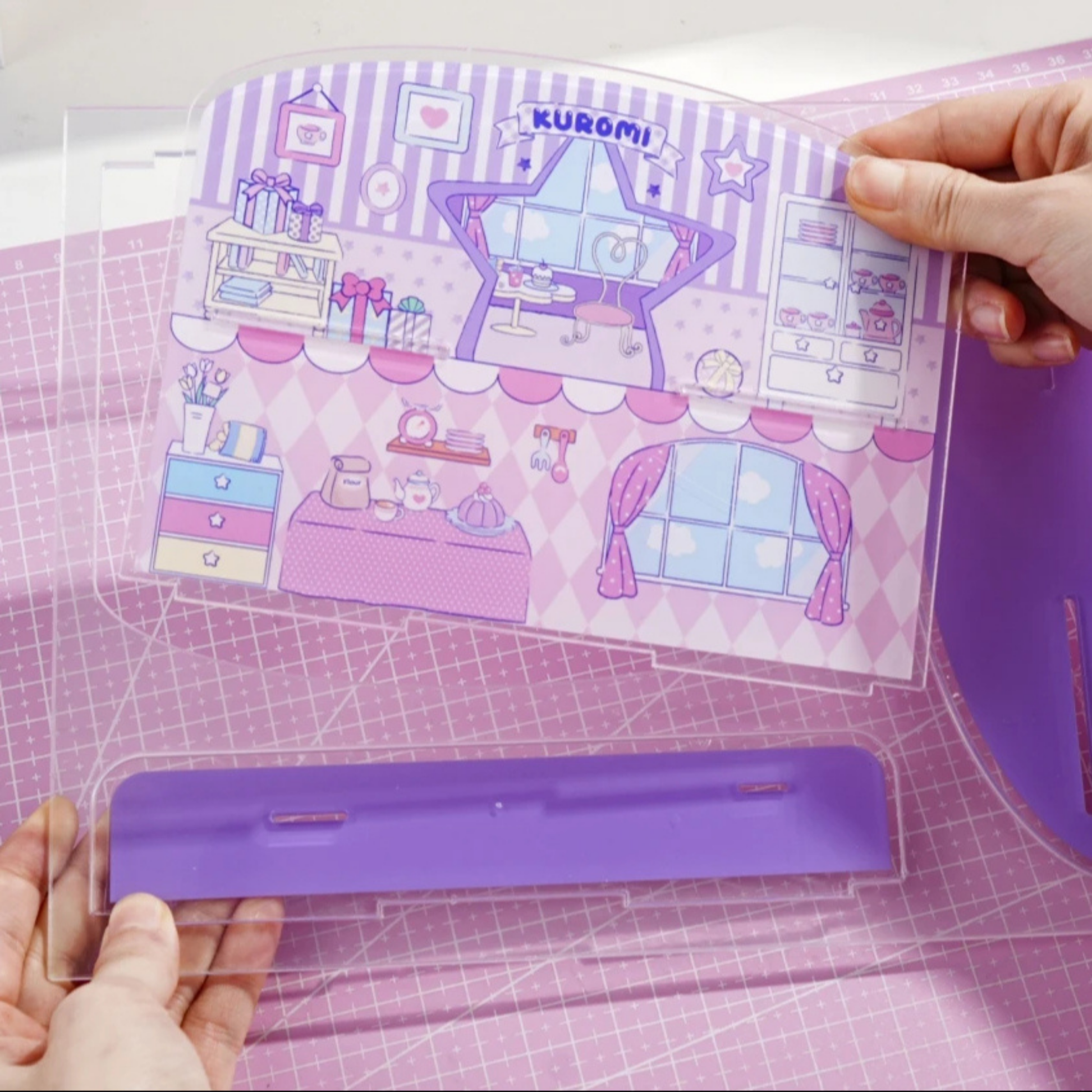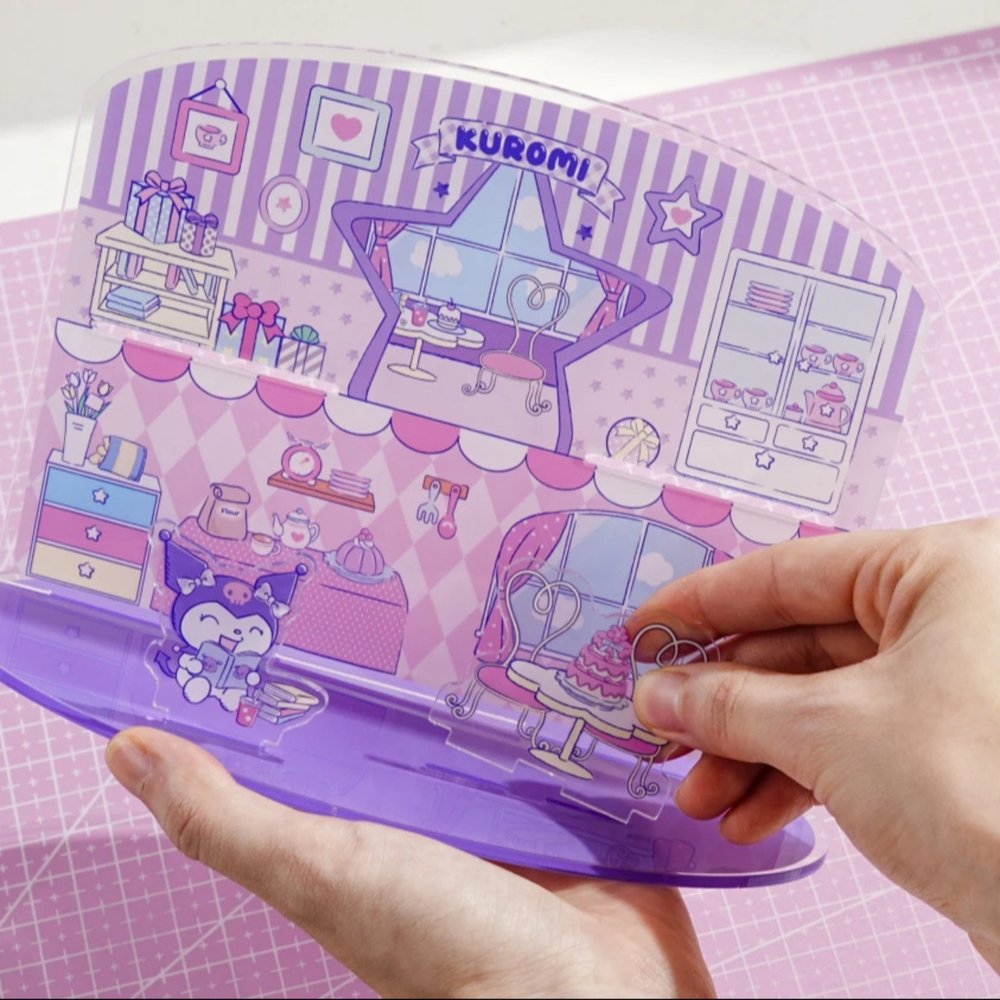 Bring your favorite Sanrio characters to life with this Kuromi DIY Acrylic Stand Set– the perfect mix of craft, decor, and collectible fun! Each set comes with beautifully printed acrylic pieces that easily slot together, letting you build a 3D mini room scene for your favorite character.