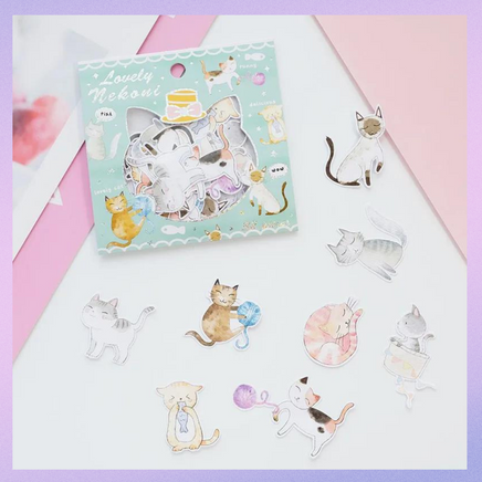 Spice up any surface with these Lovely Nekoni Washi Sticker Flakes! With 8 unique designs and 32 sticker flakes, you'll have endless possibilities for adding a touch of quirkiness to your belongings. Get ready to make your things stand out with these playful sticker flakes.