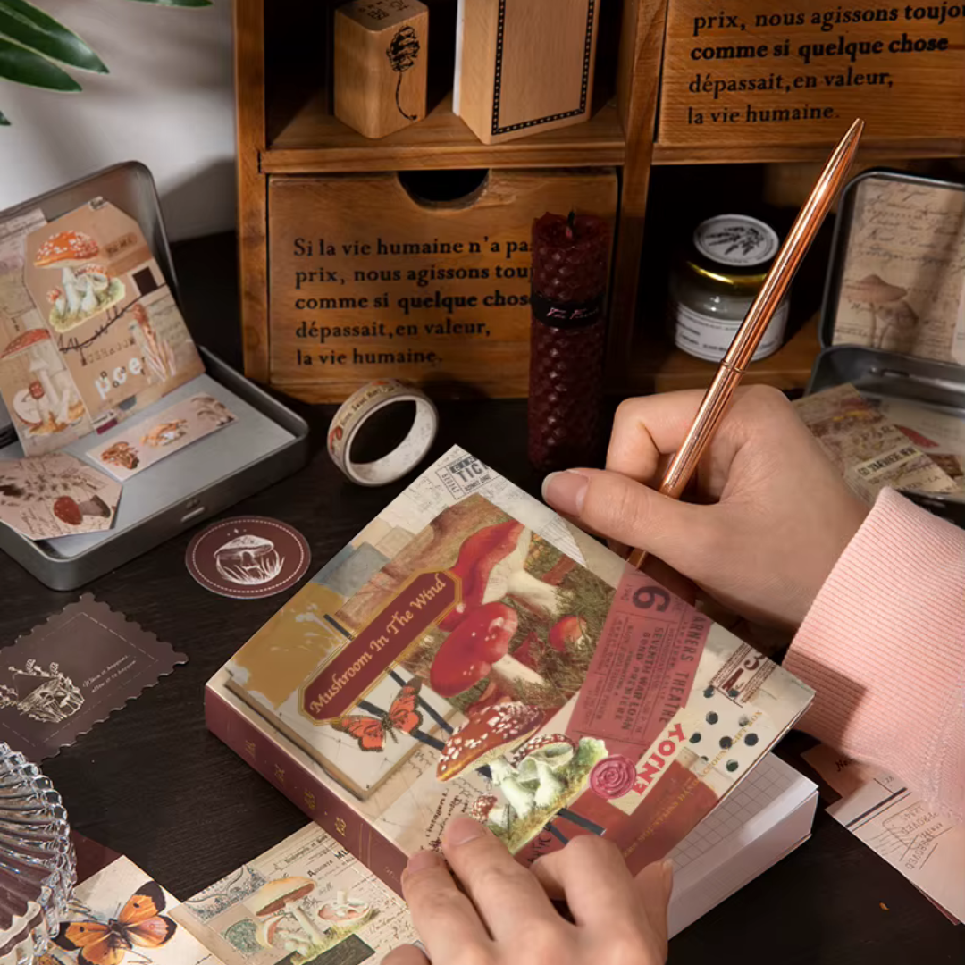 Wander through a storybook forest with the Mushroom in the Wind Journal Bundle. Bursting with earthy tones, vintage fungi prints, and woodland charm, this bundle is made for cozy journaling sessions, autumn-themed pages, or cottagecore-inspired snail mail. It's like a handwritten letter from the woods — full of warmth, wonder, and tiny mushroom magic.