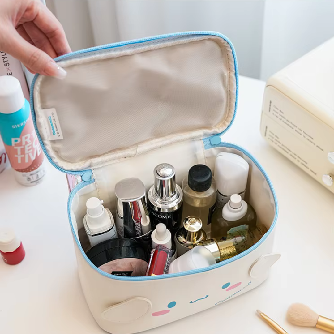 Bold, stylish, and a little mischievous—just like Kuromi herself! This Kuromi Toiletry Bag features her signature expression, a contrast pastel bow, and black-and-white gingham lid. The structured design fits all your beauty must-haves, with heart-shaped zipper pulls and a top handle for easy portability. Perfect for fans who like their cute with a twist.