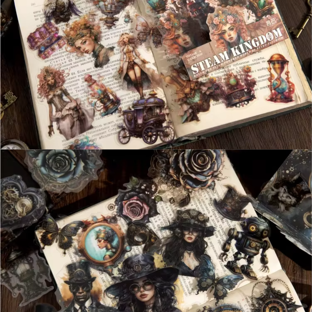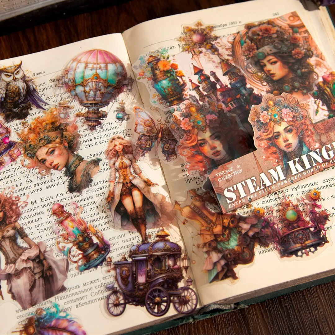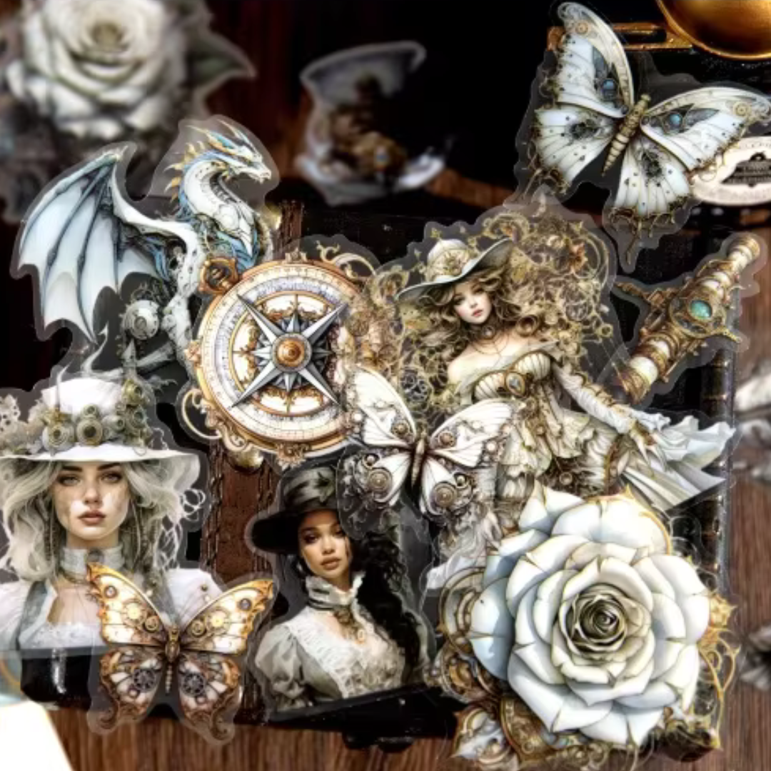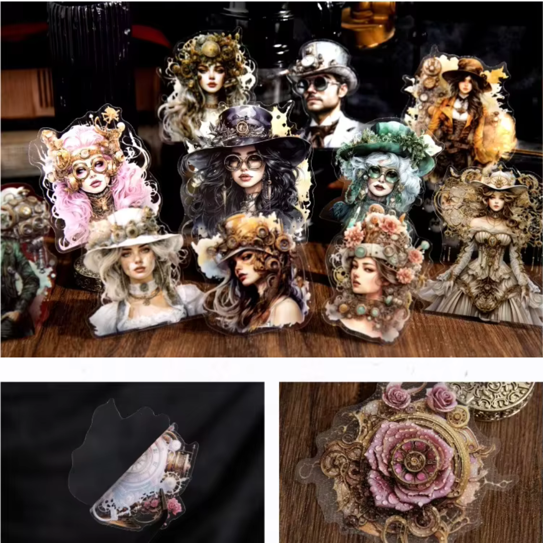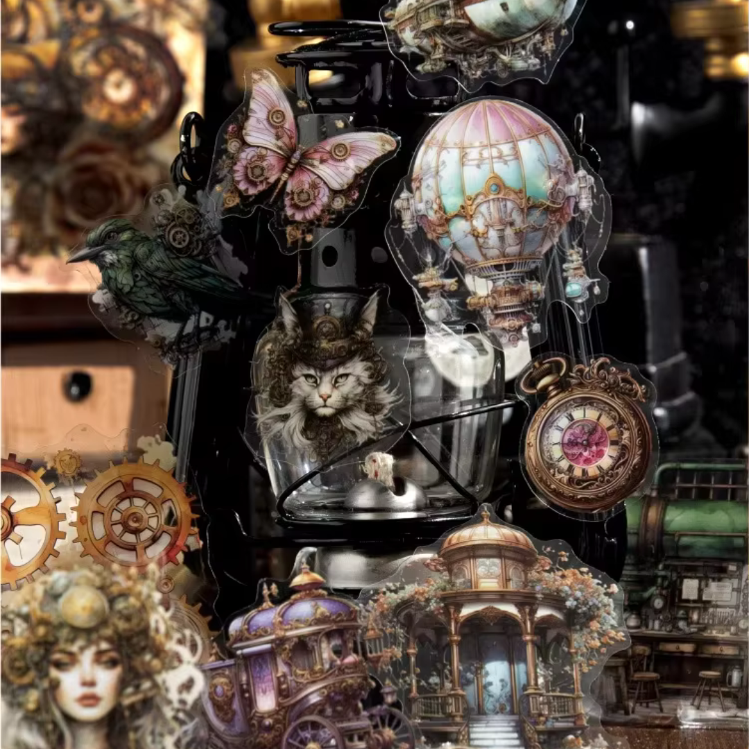Step into the imaginative world of Retro Steampunk with these intricately designed stickers. Featuring gears, cogs, and Victorian-inspired characters, each sticker combines vintage elegance with a futuristic twist.