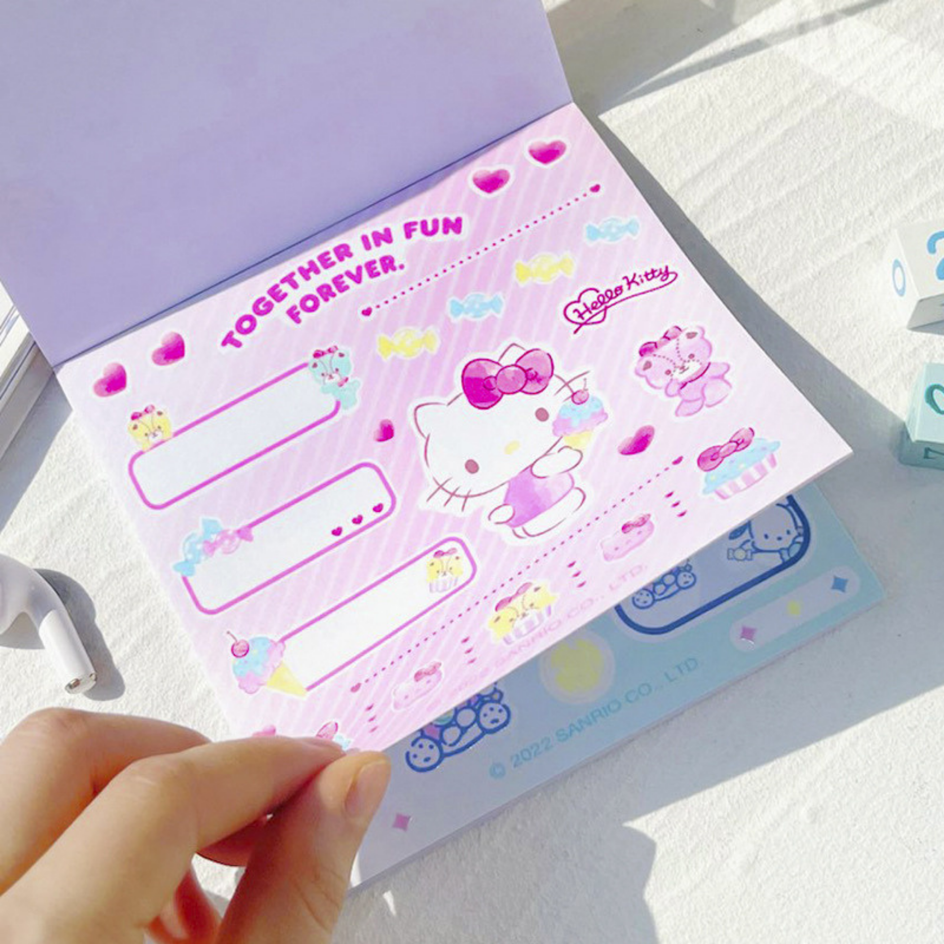 Bring your journals, planners, and crafts to life with this Sanrio Character Sticker Book! Featuring 24 unique sheets of adorable designs, you’ll find all your favorite characters including Hello Kitty, Kuromi, My Melody, Pochacco, Cinnamoroll, and more. Each page is filled with kawaii styles – from cupcakes and pastel themes to cozy room scenes and playful character poses.