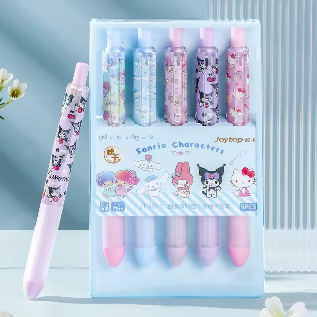 - Set includes 5 gel pens featuring different Sanrio characters