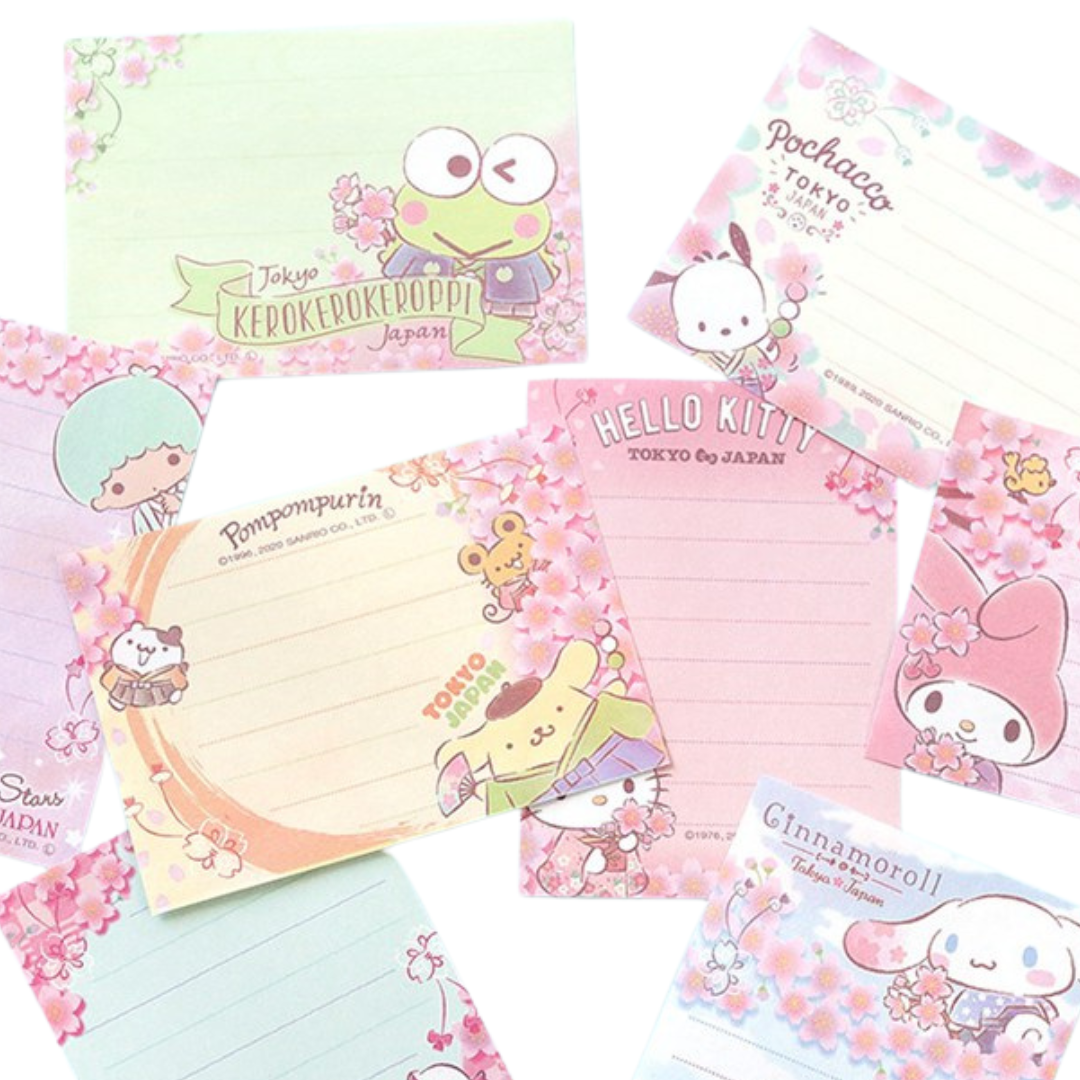 Add a touch of springtime charm to your stationery collection with these Sanrio Sakura-Themed Mini Notepads. Featuring adorable designs of beloved characters like Cinnamoroll, Tuxedosam, My Melody, and more, these notepads are perfect for jotting down quick notes or messages.